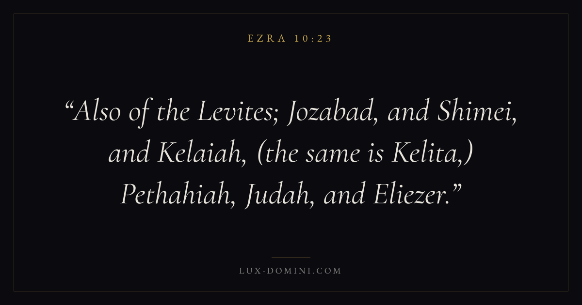 Also of the Levites; Jozabad, and Shimei, and Kelaiah, (the same is Kelita,) Pethahiah, Judah, and Eliezer.