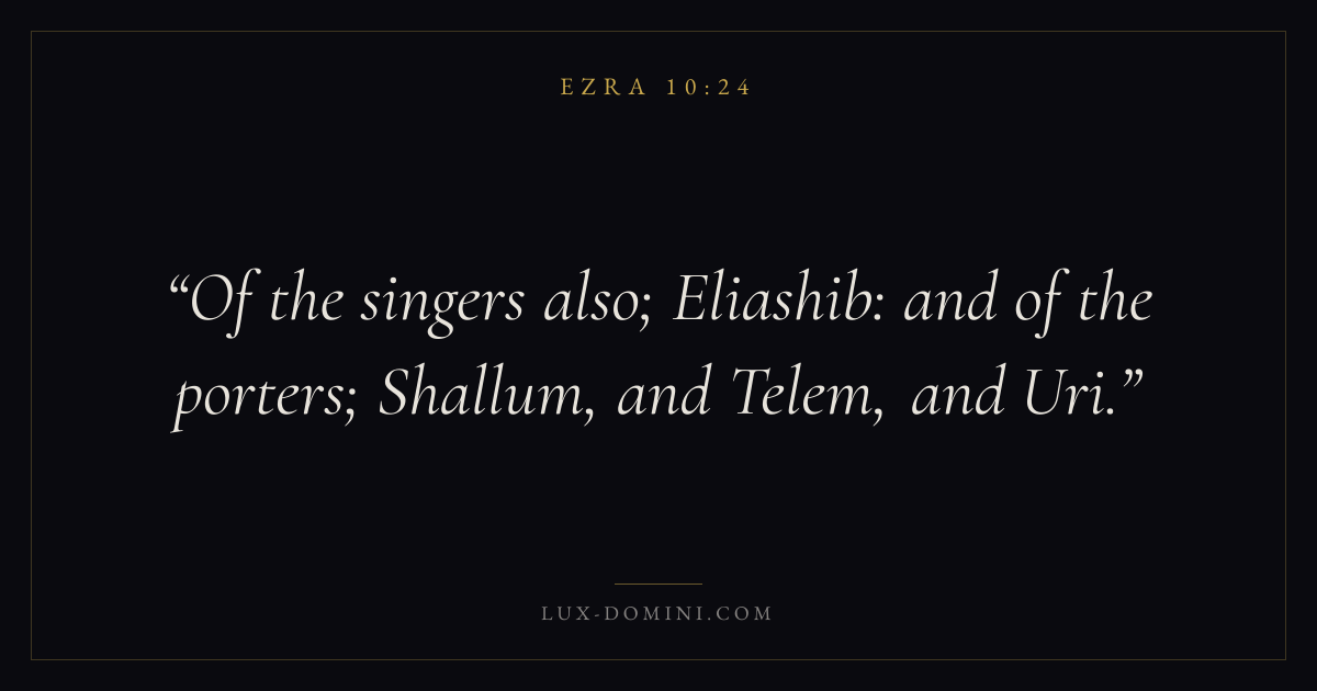 Of the singers also; Eliashib: and of the porters; Shallum, and Telem, and Uri.