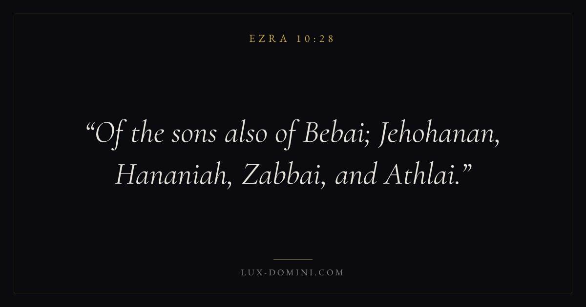 Of the sons also of Bebai; Jehohanan, Hananiah, Zabbai, and Athlai.