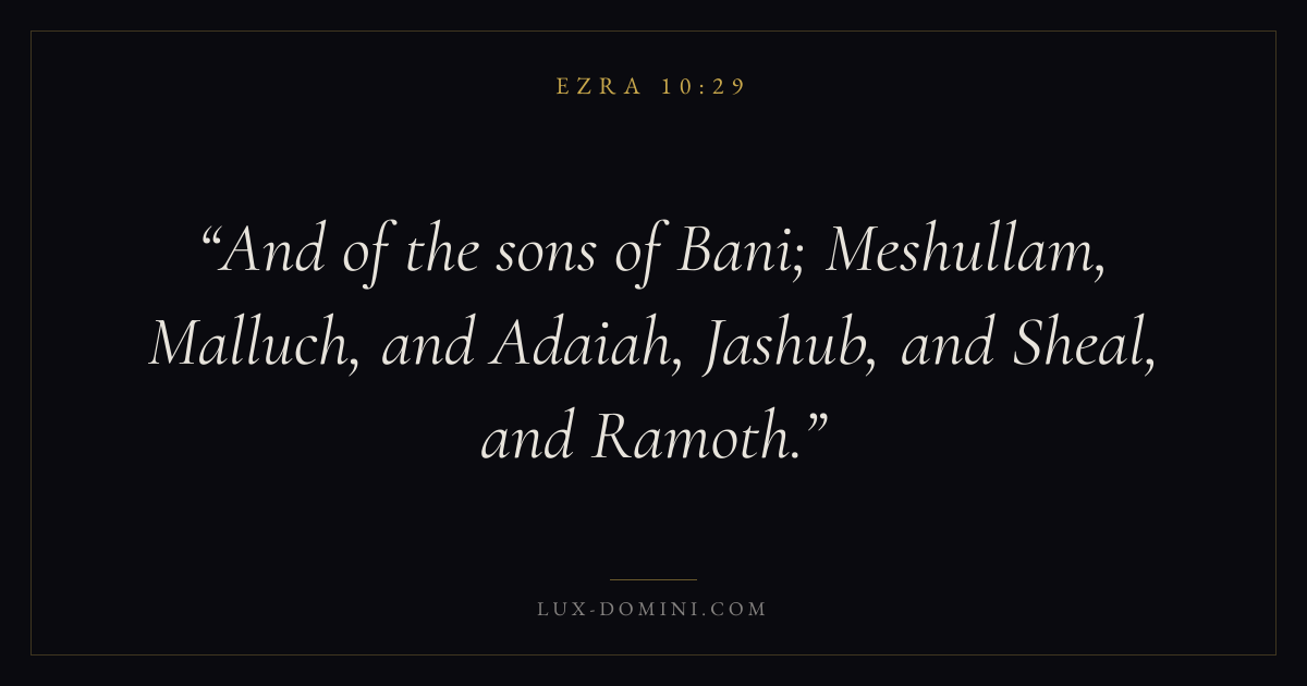 And of the sons of Bani; Meshullam, Malluch, and Adaiah, Jashub, and Sheal, and Ramoth.