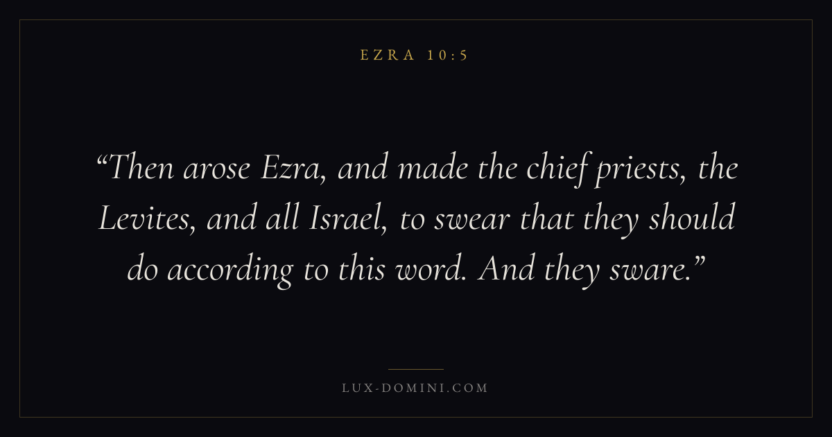 Then arose Ezra, and made the chief priests, the Levites, and all Israel, to swear that they should do according to this word. And they sware.