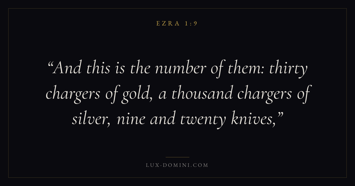And this is the number of them: thirty chargers of gold, a thousand chargers of silver, nine and twenty knives,