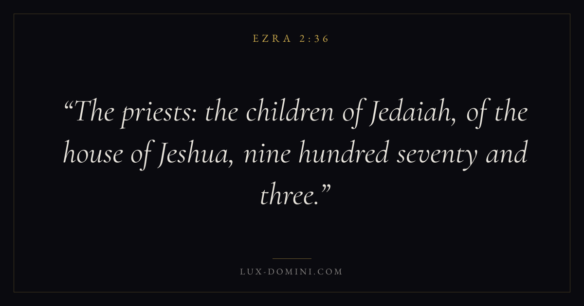 The priests: the children of Jedaiah, of the house of Jeshua, nine hundred seventy and three.