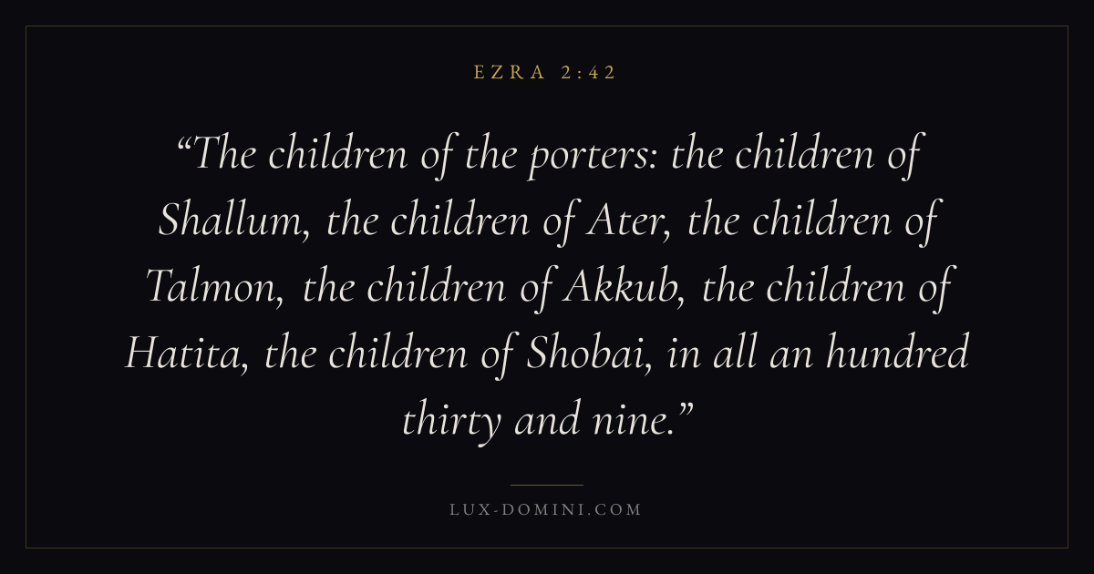 The children of the porters: the children of Shallum, the children of Ater, the children of Talmon, the children of Akkub, the children of Hatita, the children of Shobai, in all an hundred thirty and nine.