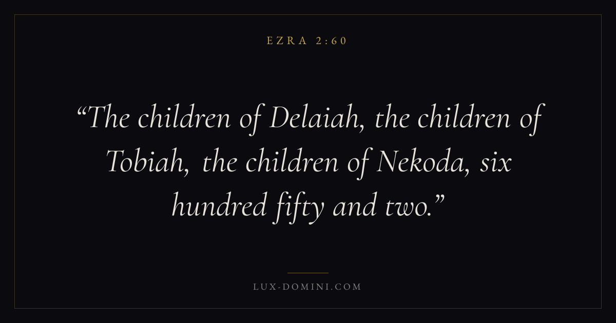 The children of Delaiah, the children of Tobiah, the children of Nekoda, six hundred fifty and two.