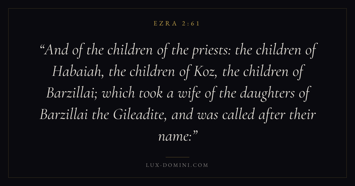 And of the children of the priests: the children of Habaiah, the children of Koz, the children of Barzillai; which took a wife of the daughters of Barzillai the Gileadite, and was called after their name:
