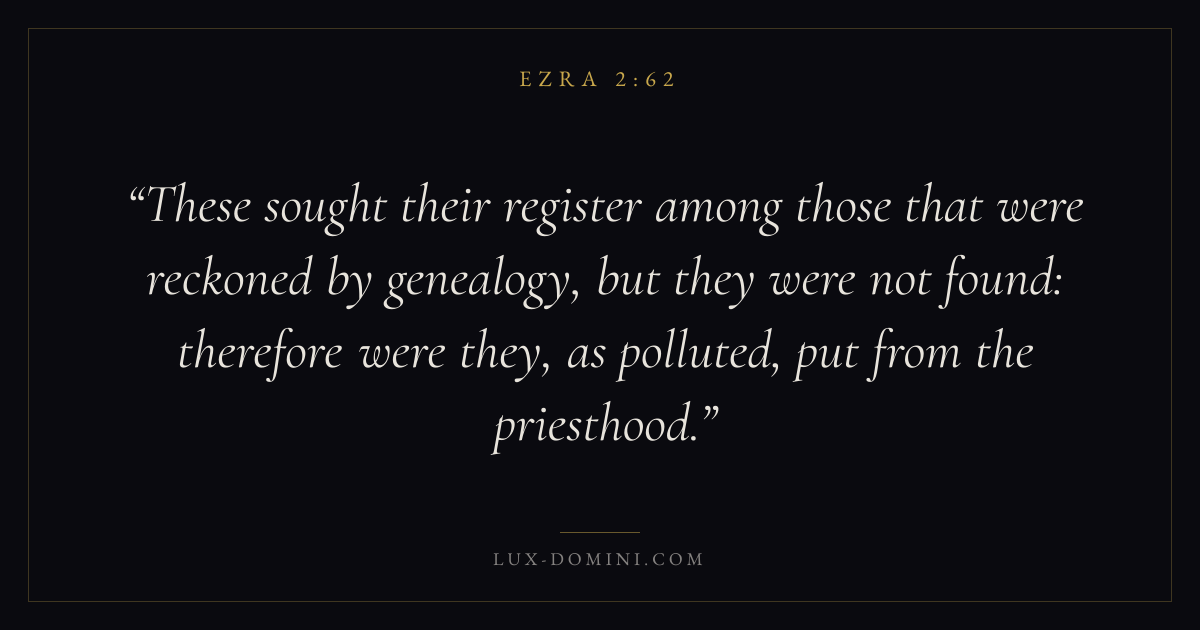 These sought their register among those that were reckoned by genealogy, but they were not found: therefore were they, as polluted, put from the priesthood.