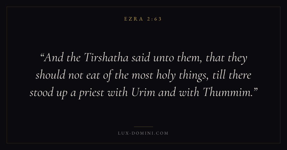 And the Tirshatha said unto them, that they should not eat of the most holy things, till there stood up a priest with Urim and with Thummim.
