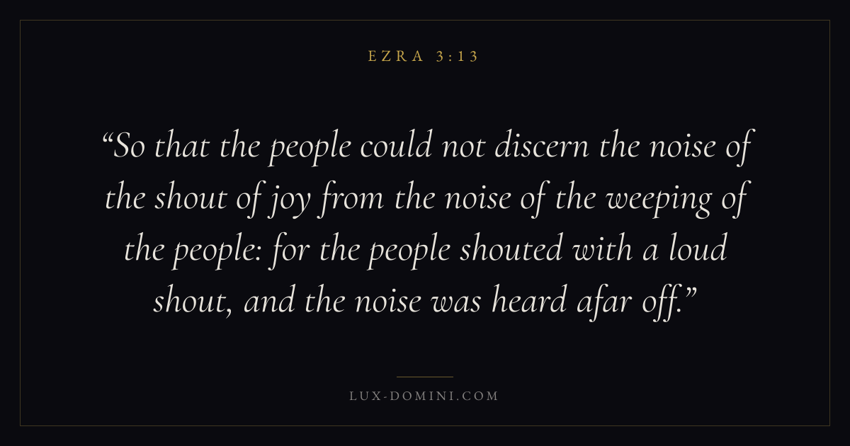 So that the people could not discern the noise of the shout of joy from the noise of the weeping of the people: for the people shouted with a loud shout, and the noise was heard afar off.