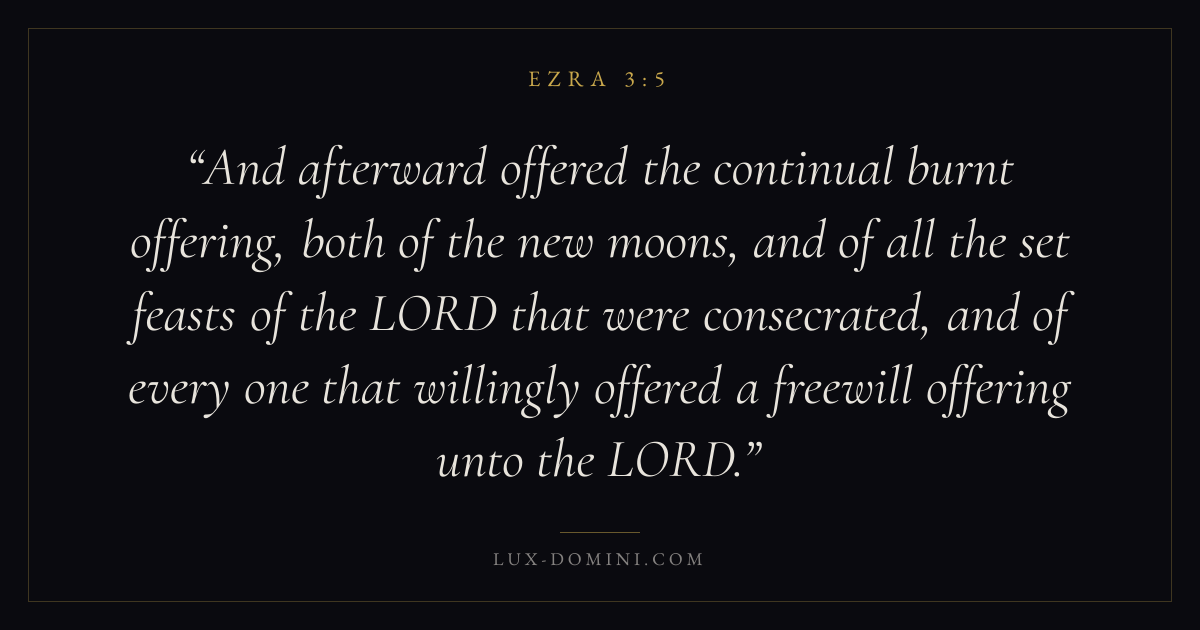 And afterward offered the continual burnt offering, both of the new moons, and of all the set feasts of the LORD that were consecrated, and of every one that willingly offered a freewill offering unto the LORD.