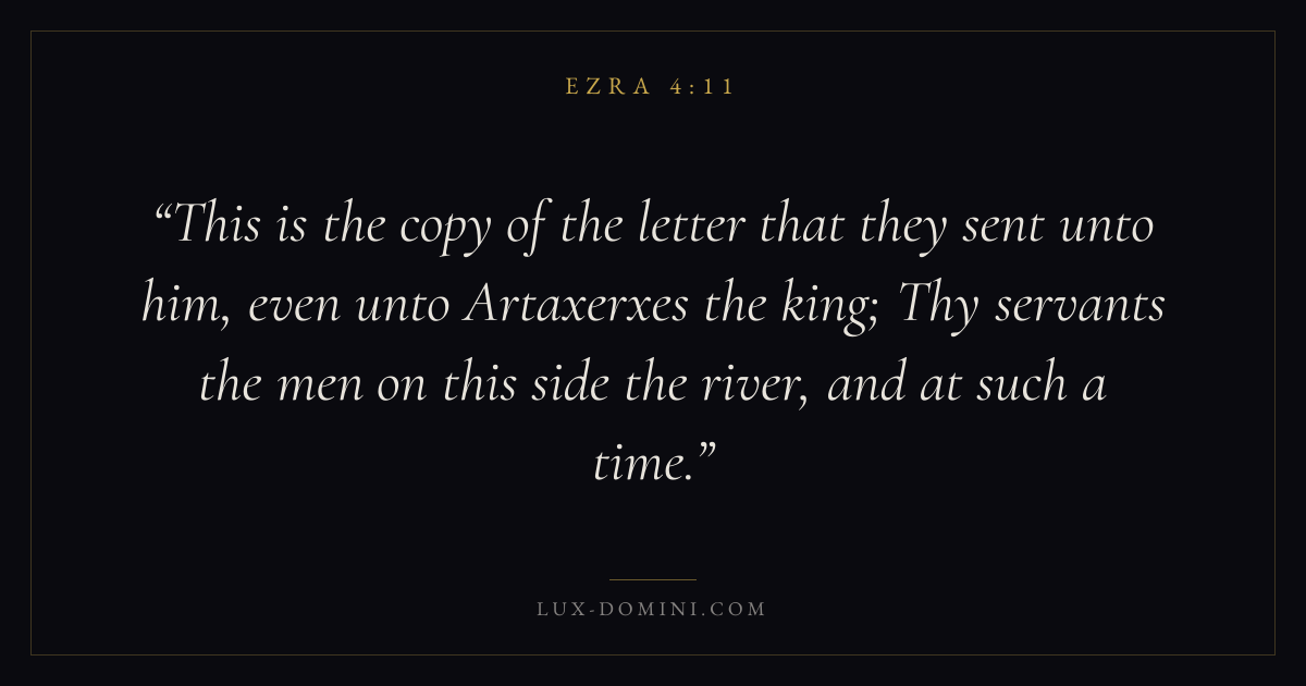 This is the copy of the letter that they sent unto him, even unto Artaxerxes the king; Thy servants the men on this side the river, and at such a time.