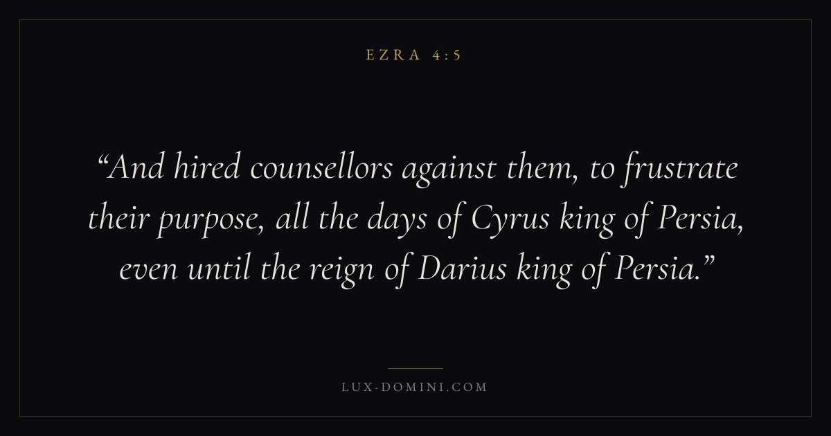 And hired counsellors against them, to frustrate their purpose, all the days of Cyrus king of Persia, even until the reign of Darius king of Persia.