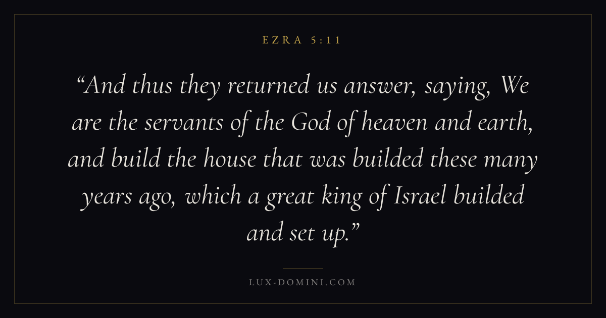 And thus they returned us answer, saying, We are the servants of the God of heaven and earth, and build the house that was builded these many years ago, which a great king of Israel builded and set up.