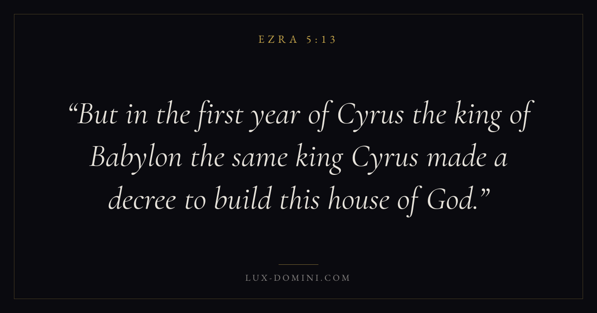 But in the first year of Cyrus the king of Babylon the same king Cyrus made a decree to build this house of God.