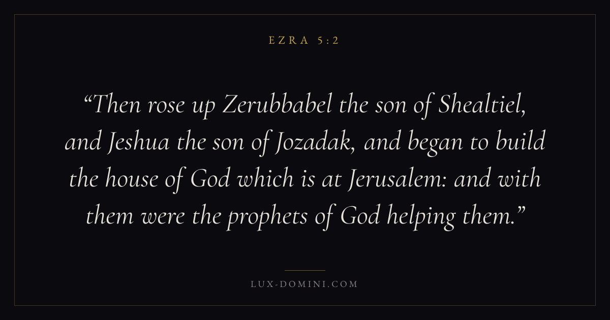 Then rose up Zerubbabel the son of Shealtiel, and Jeshua the son of Jozadak, and began to build the house of God which is at Jerusalem: and with them were the prophets of God helping them.