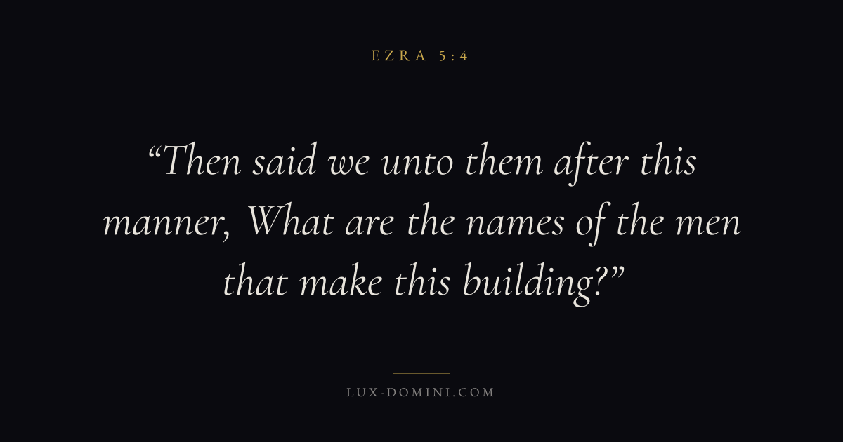 Then said we unto them after this manner, What are the names of the men that make this building?