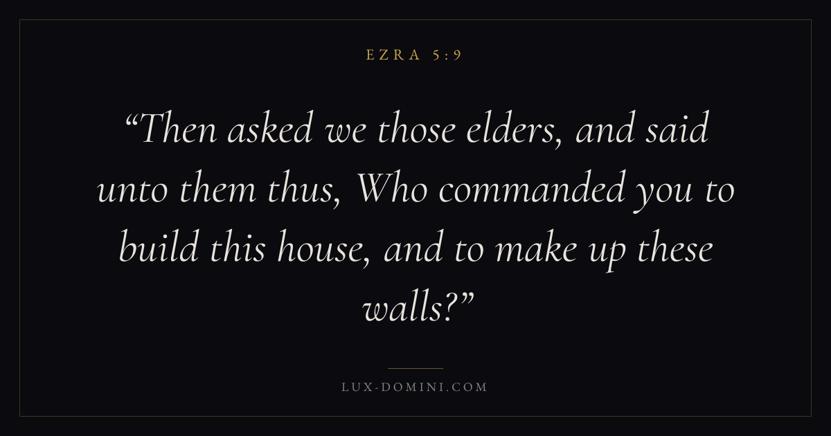 Then asked we those elders, and said unto them thus, Who commanded you to build this house, and to make up these walls?