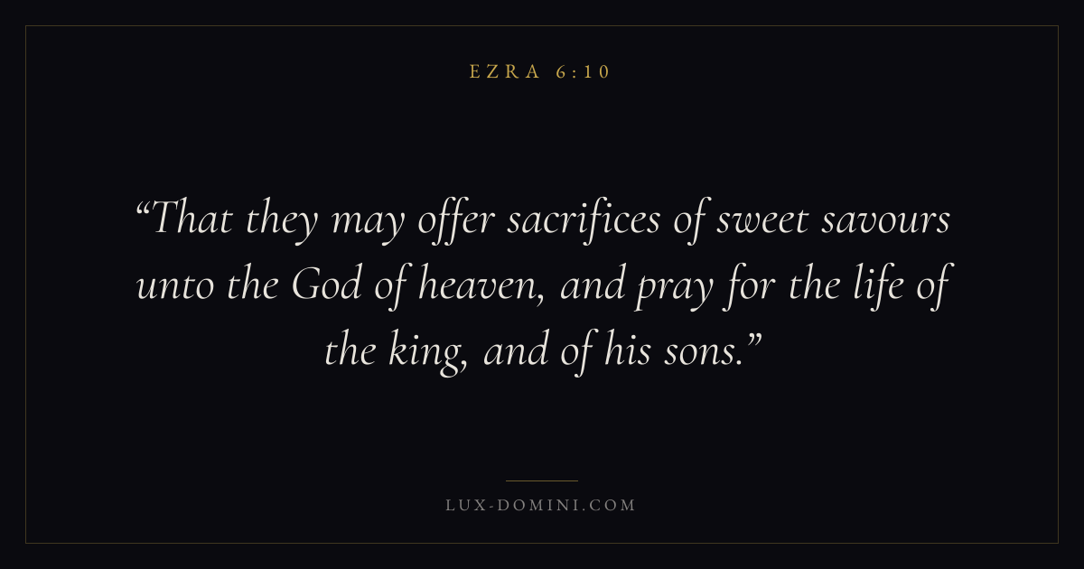 That they may offer sacrifices of sweet savours unto the God of heaven, and pray for the life of the king, and of his sons.