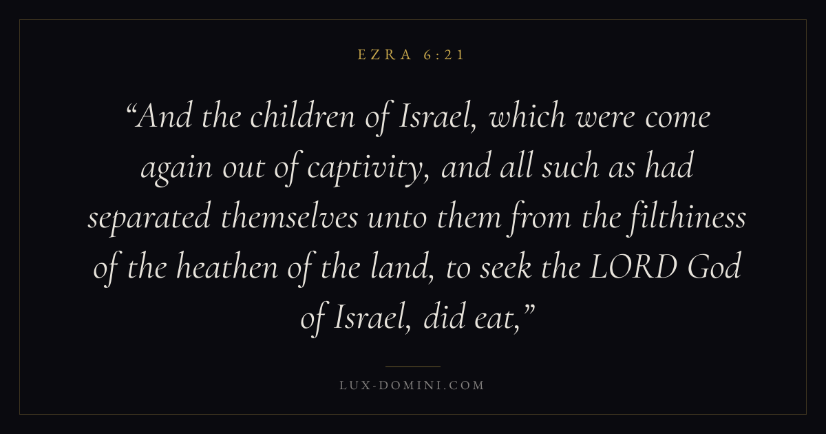 And the children of Israel, which were come again out of captivity, and all such as had separated themselves unto them from the filthiness of the heathen of the land, to seek the LORD God of Israel, did eat,