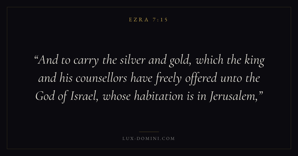 And to carry the silver and gold, which the king and his counsellors have freely offered unto the God of Israel, whose habitation is in Jerusalem,