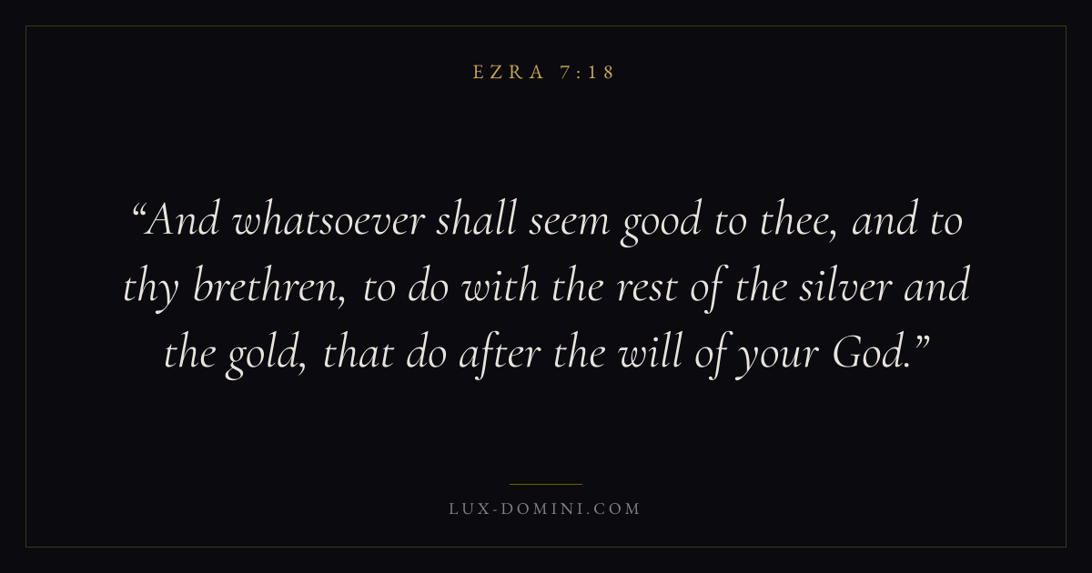 And whatsoever shall seem good to thee, and to thy brethren, to do with the rest of the silver and the gold, that do after the will of your God.