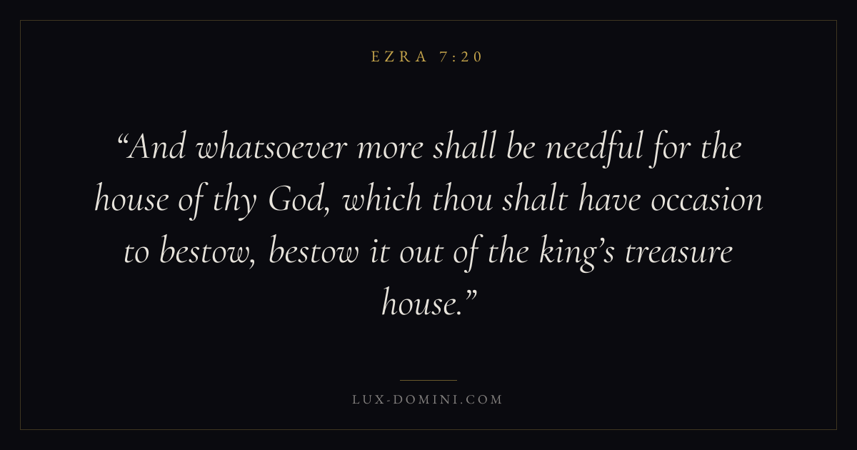 And whatsoever more shall be needful for the house of thy God, which thou shalt have occasion to bestow, bestow it out of the king’s treasure house.