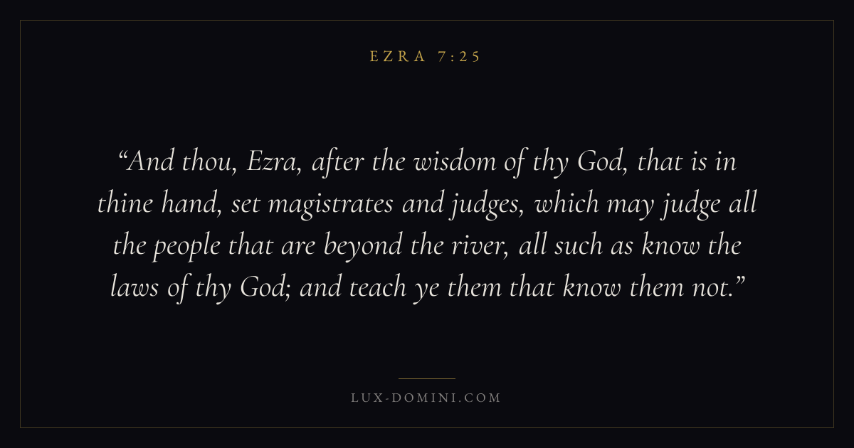 And thou, Ezra, after the wisdom of thy God, that is in thine hand, set magistrates and judges, which may judge all the people that are beyond the river, all such as know the laws of thy God; and teach ye them that know them not.