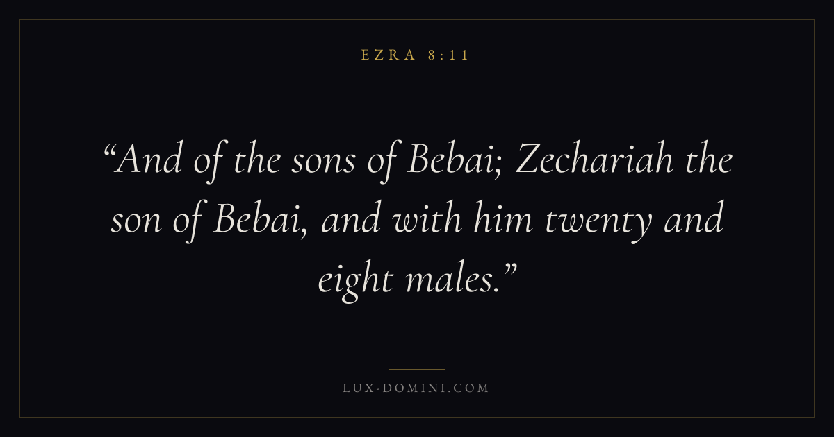 And of the sons of Bebai; Zechariah the son of Bebai, and with him twenty and eight males.