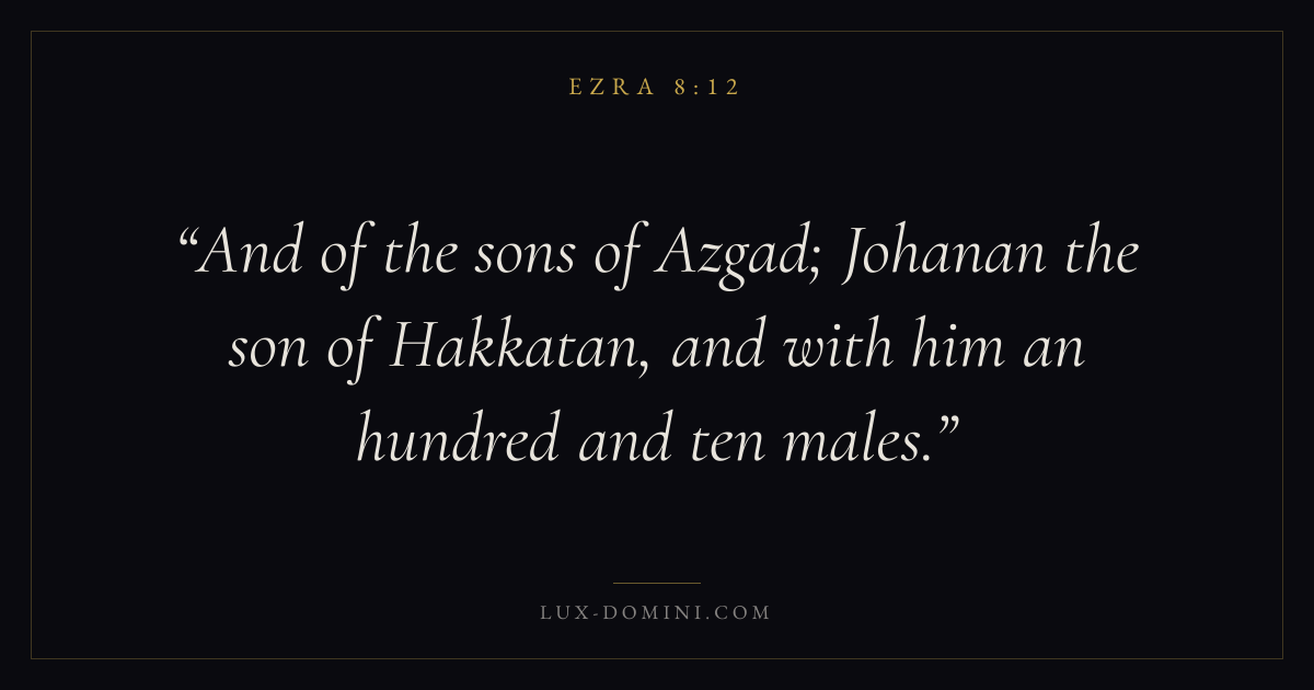 And of the sons of Azgad; Johanan the son of Hakkatan, and with him an hundred and ten males.