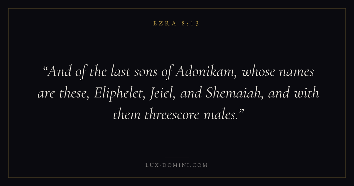 And of the last sons of Adonikam, whose names are these, Eliphelet, Jeiel, and Shemaiah, and with them threescore males.