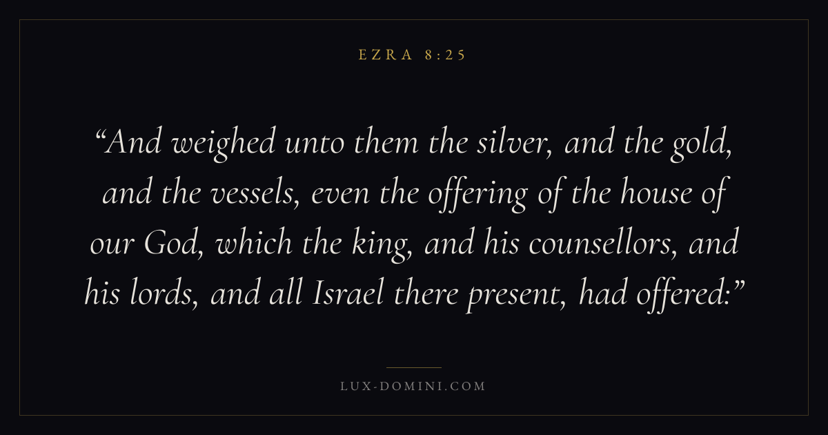 And weighed unto them the silver, and the gold, and the vessels, even the offering of the house of our God, which the king, and his counsellors, and his lords, and all Israel there present, had offered: