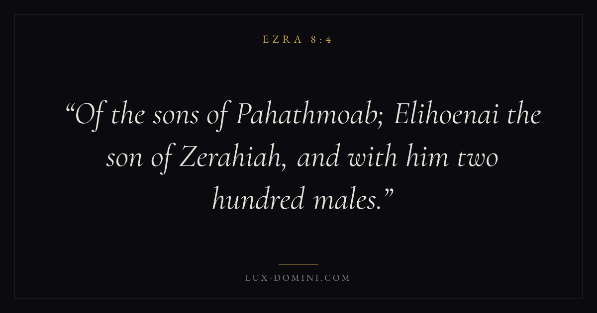 Of the sons of Pahathmoab; Elihoenai the son of Zerahiah, and with him two hundred males.