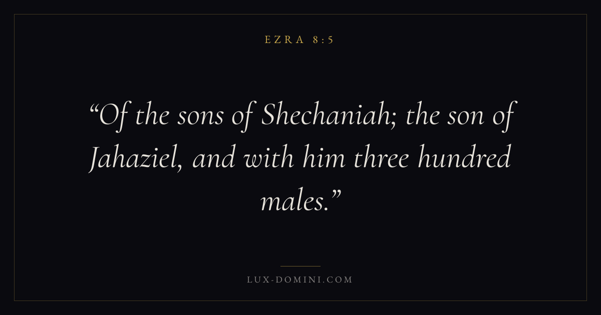 Of the sons of Shechaniah; the son of Jahaziel, and with him three hundred males.