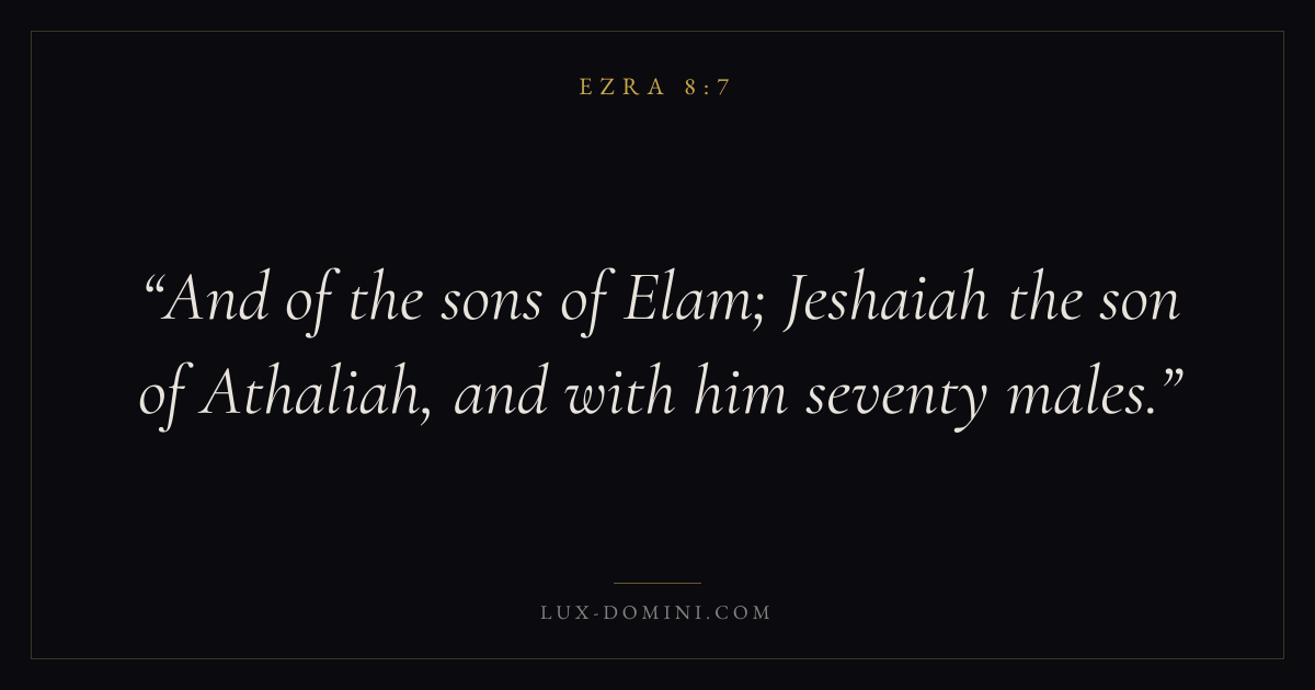 And of the sons of Elam; Jeshaiah the son of Athaliah, and with him seventy males.