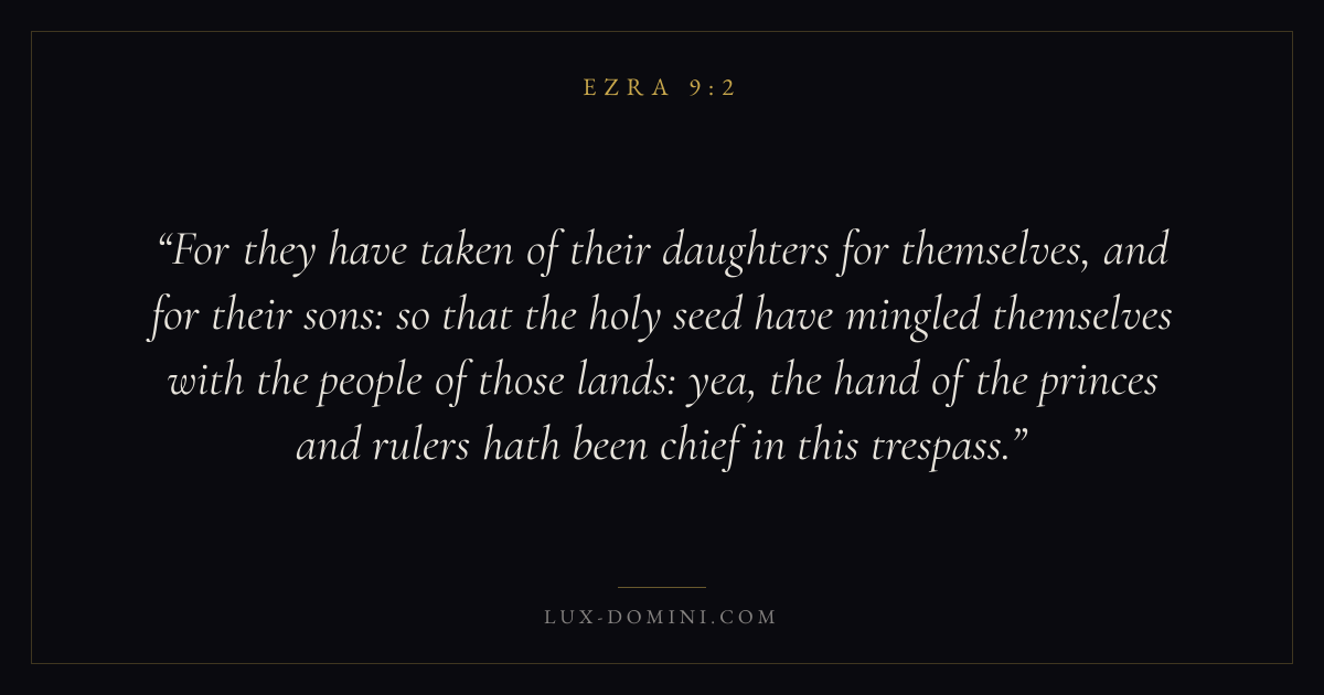 For they have taken of their daughters for themselves, and for their sons: so that the holy seed have mingled themselves with the people of those lands: yea, the hand of the princes and rulers hath been chief in this trespass.