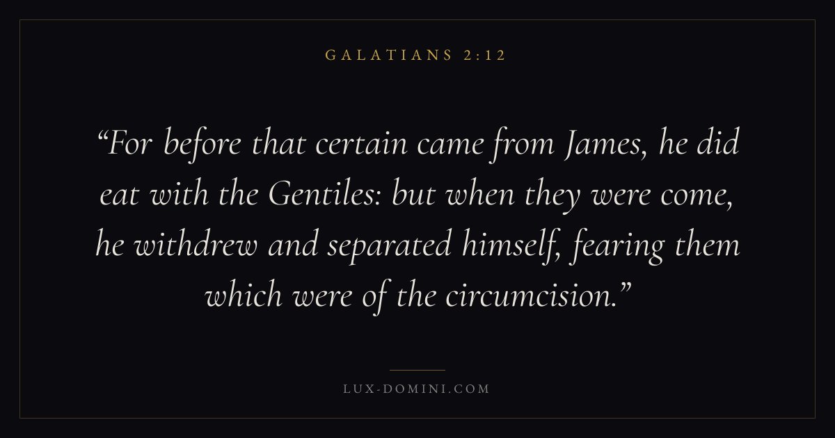 For before that certain came from James, he did eat with the Gentiles: but when they were come, he withdrew and separated himself, fearing them which were of the circumcision.