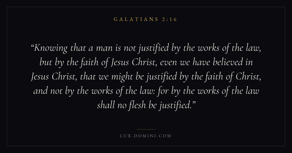 Knowing that a man is not justified by the works of the law, but by the faith of Jesus Christ, even we have believed in Jesus Christ, that we might be justified by the faith of Christ, and not by the works of the law: for by the works of the law shall no flesh be justified.