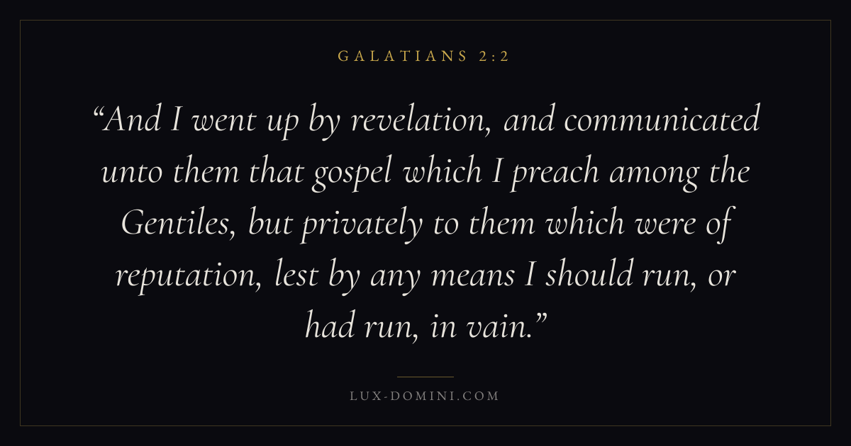 And I went up by revelation, and communicated unto them that gospel which I preach among the Gentiles, but privately to them which were of reputation, lest by any means I should run, or had run, in vain.