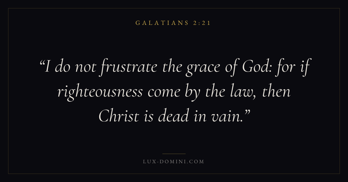 I do not frustrate the grace of God: for if righteousness come by the law, then Christ is dead in vain.