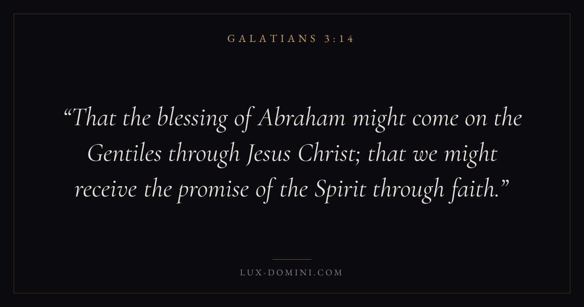 That the blessing of Abraham might come on the Gentiles through Jesus Christ; that we might receive the promise of the Spirit through faith.