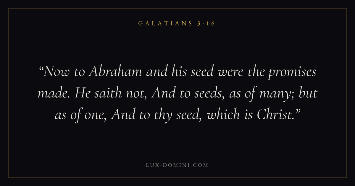 Now to Abraham and his seed were the promises made. He saith not, And to seeds, as of many; but as of one, And to thy seed, which is Christ.