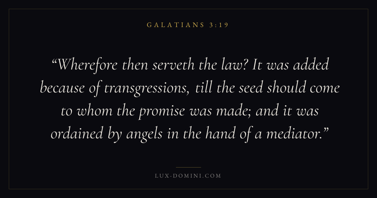 Wherefore then serveth the law? It was added because of transgressions, till the seed should come to whom the promise was made; and it was ordained by angels in the hand of a mediator.