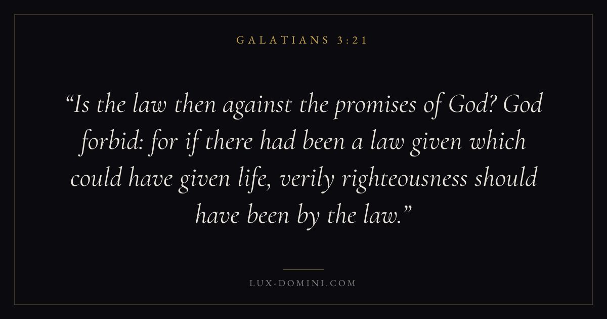 Is the law then against the promises of God? God forbid: for if there had been a law given which could have given life, verily righteousness should have been by the law.