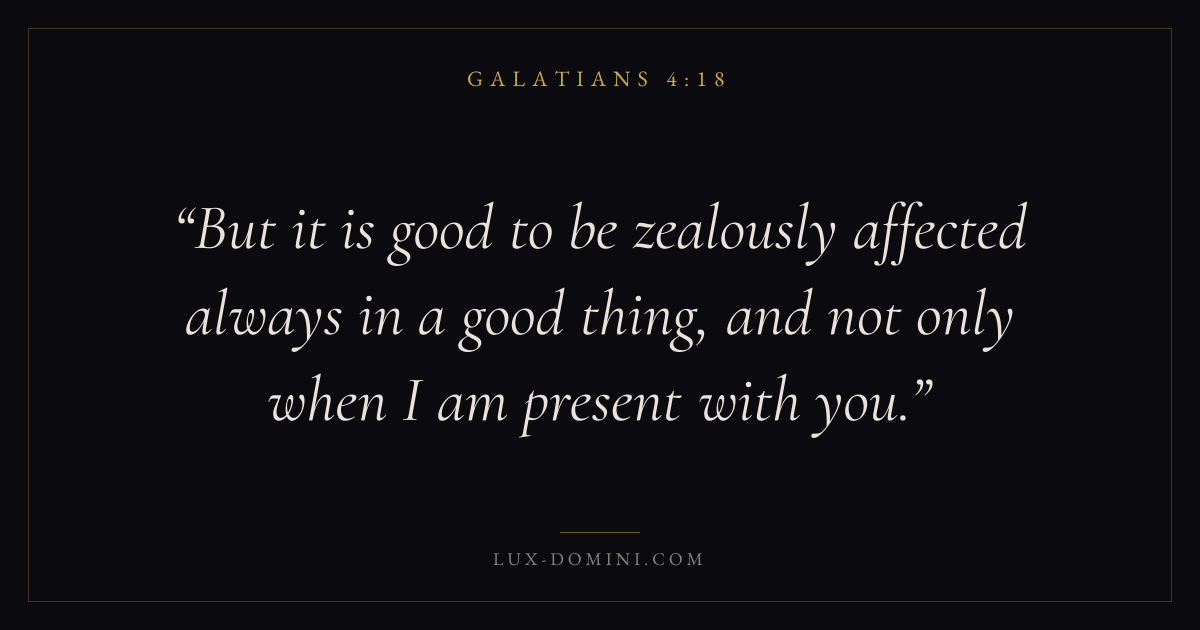 But it is good to be zealously affected always in a good thing, and not only when I am present with you.