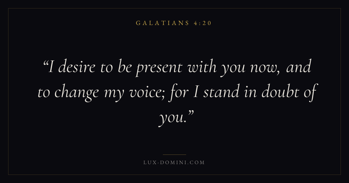 What does Galatians 4:20 mean?