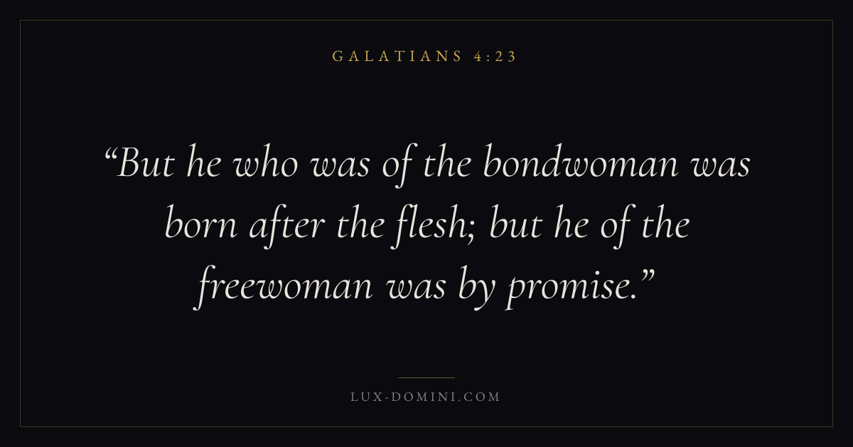 But he who was of the bondwoman was born after the flesh; but he of the freewoman was by promise.