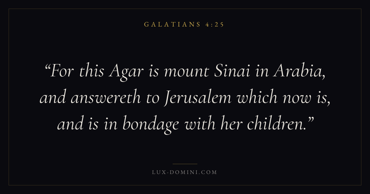 For this Agar is mount Sinai in Arabia, and answereth to Jerusalem which now is, and is in bondage with her children.