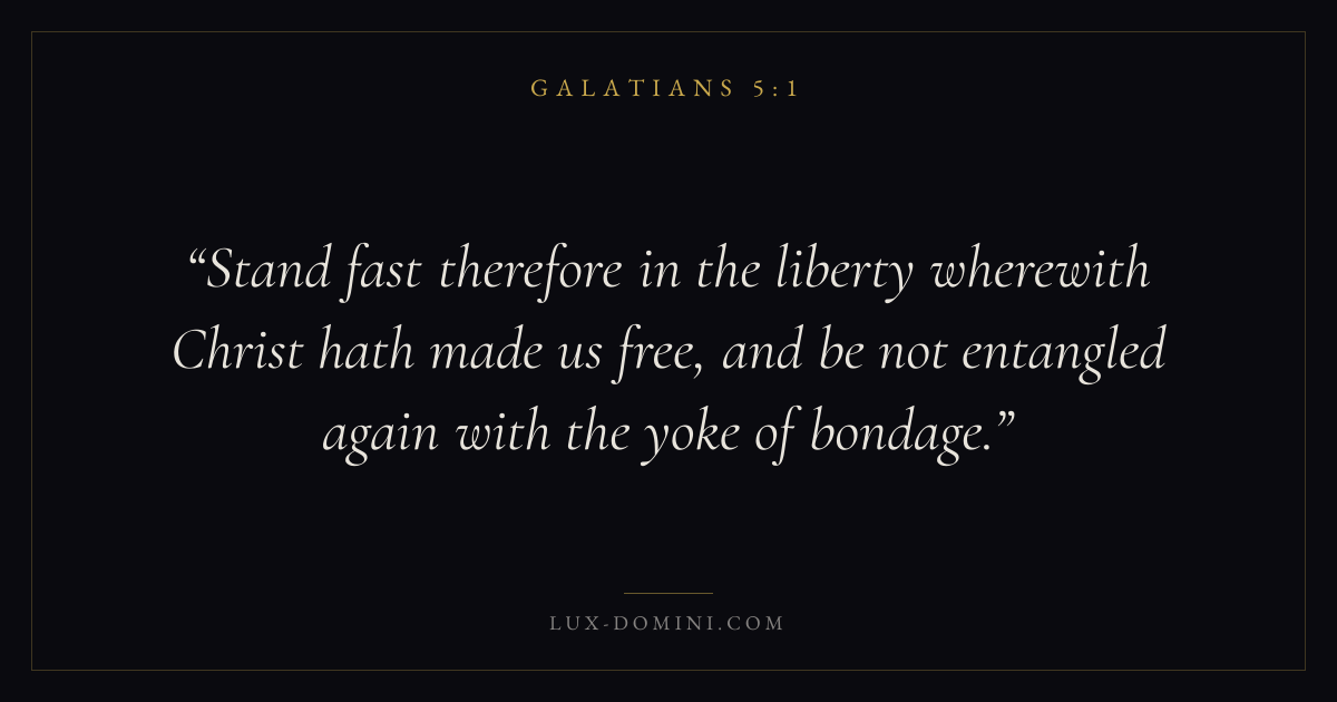 Stand fast therefore in the liberty wherewith Christ hath made us free, and be not entangled again with the yoke of bondage.