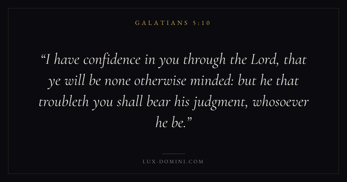 I have confidence in you through the Lord, that ye will be none otherwise minded: but he that troubleth you shall bear his judgment, whosoever he be.