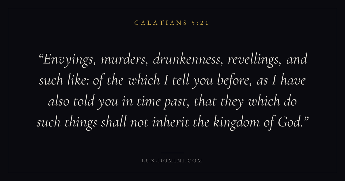 Envyings, murders, drunkenness, revellings, and such like: of the which I tell you before, as I have also told you in time past, that they which do such things shall not inherit the kingdom of God.
